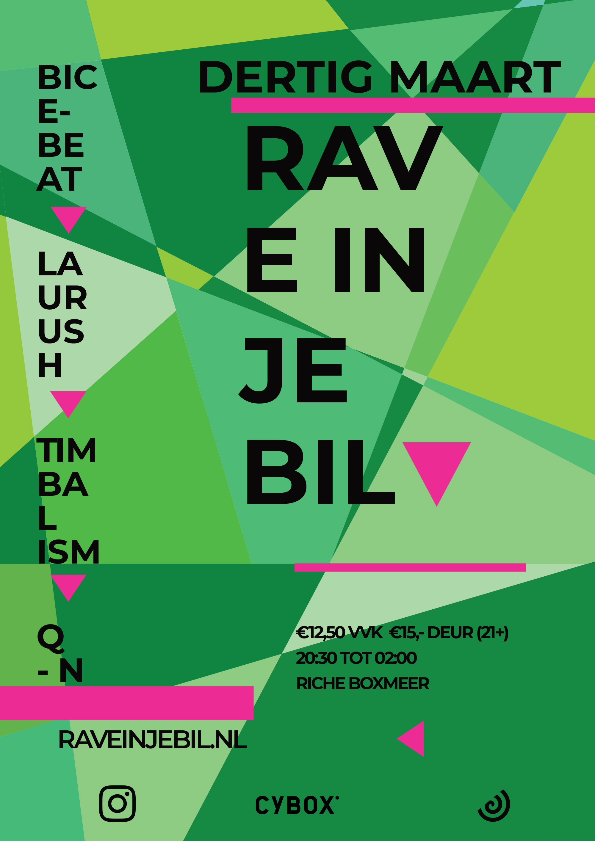 “Rave in je bil” is op zaterdag 30 maart in de foyer van Hotel Riche in Boxmeer. De deuren gaan om 20.30u open en sluiten om 2.00u. Kaartjes zijn te koop via: www.raveinjebil.nl (€12,50 vvk) of op de avond zelf aan de deur verkrijgbaar. (€15)